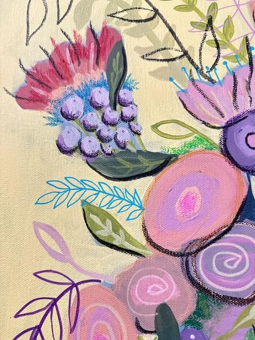 This piece is a celebration of nature’s eccentric beauty, perfect for collectors who appreciate expressive brushwork, bold color palettes, and imaginative floral storytelling.